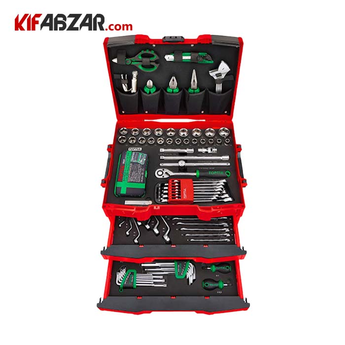 جعبه ابزار 4 طبقه تاپ تول، جعبه پلاستیکی قرمز از مواد ABS با مقاومت بالا در برابر ضربه و دارای دسته های محکم در بالا و دسته های جانبی برای بلند کردن و حمل راحت می باشد؛ کشو های جعبه ابزار 100 درصد کاملا جمع و باز می شود. جعبه ابزار 4 طبقه 137 پارچه جزء کامل ترین و کاربردی ترین جعبه ابزارهایی می باشد که نیاز کامل یک تعمیرکار به ابزار را برطرف می کند. بهترین ها را در هایپر صنعت مدرن پیدا کنید.