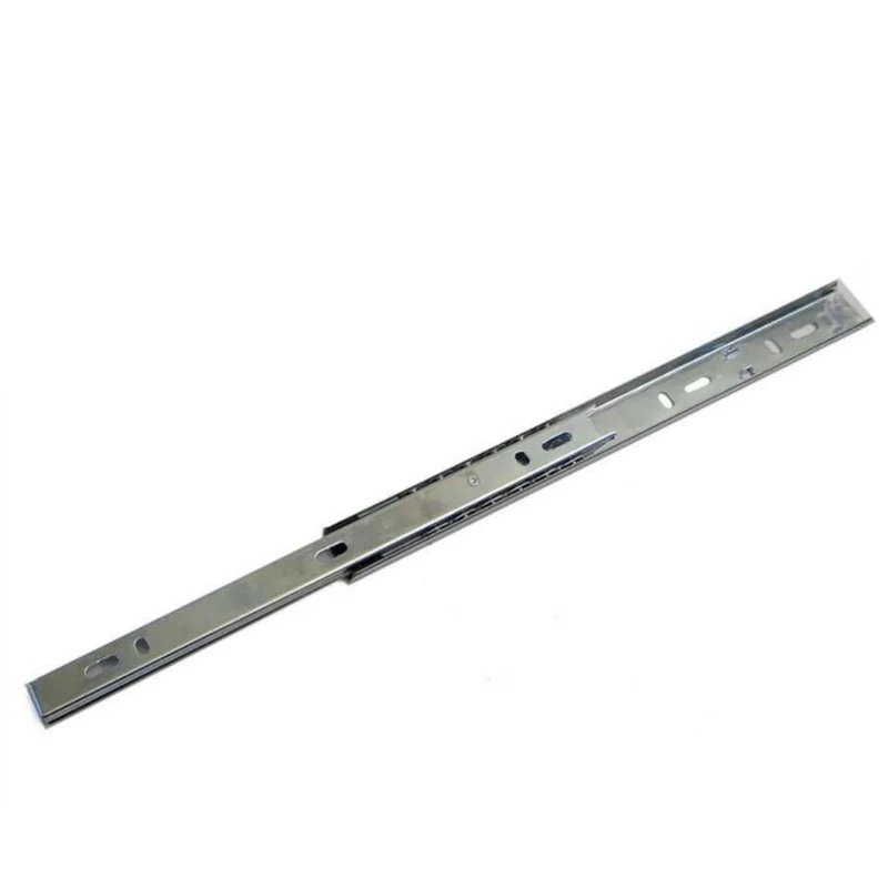 ریل دو تکه ساچمه ای ساختاری از جنس فلز دارد که با رنگ کروم آبکاری شده است. بدنه این ریل از دو بخش مجزا تشکیل شده که برای ایجاد حالت کشویی بر روی هم سوار شده اند. در دو سوی ریل دو تکه ساچمه ای ضامن سیاه رنگی قرار گرفته است که مانع از خروج آسان کشو به صورت کامل میشود. این ویژگی ایمنی محصول را افزایش میدهد چرا که مانع از افتادن کشو به بیرون به صورت ناگهانی میشود.موجود در هایپر صنعت مدرن واقع در ورداورد