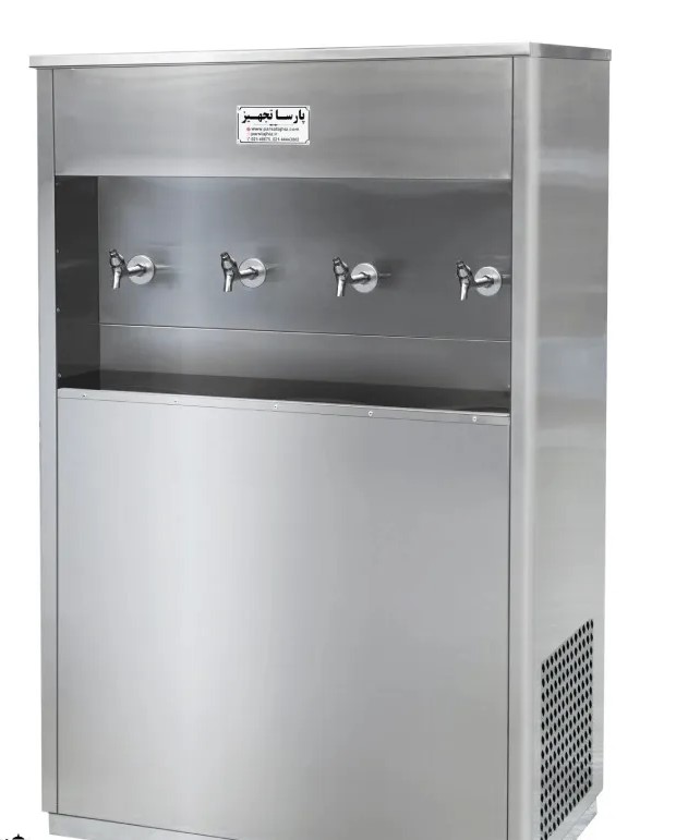 آبسردکن استیل چهار شیر موجود در هایپر صنعت مدرن مدل 4BT – ظرفیت خنک کردن 120 لیتر آب در ساعت،ترموستات دانفوس، کمپرسور 1.2 اسب، حجم مخزن 60 لیتر – جنس بدنه 0/7 دهم – مخزن استیل ضد زنگ ضخامت 1 یک با جوش آرگون است ، چهار عدد شیر استیل، لوله کشی مس،گاز 134 مخصوص آبسردکن-ابعاد 140 × 50 × 85 – کندانسور 1/2- دارای 14 ماه گارانتی