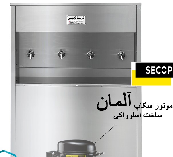 آبسردکن استیل چهار موجود در هایپر صنعت مدرن مدل 4BS – ظرفیت خنک کردن 180 لیتر آب در ساعت،ترموستات دانفوس، کمپرسور 1.2 اسب برند سکاپ آلمان ساخت اسلوواکی، حجم مخزن 60 لیتر – جنس بدنه 0/7 دهم – مخزن استیل ضد زنگ ضخامت 1 یک با جوش آرگون است ، چهار عدد شیر استیل، لوله کشی مس،گاز 134 مخصوص آبسردکن-ابعاد 140 × 50 × 85 – کندانسور 1/2- دارای 14 ماه گارانتی